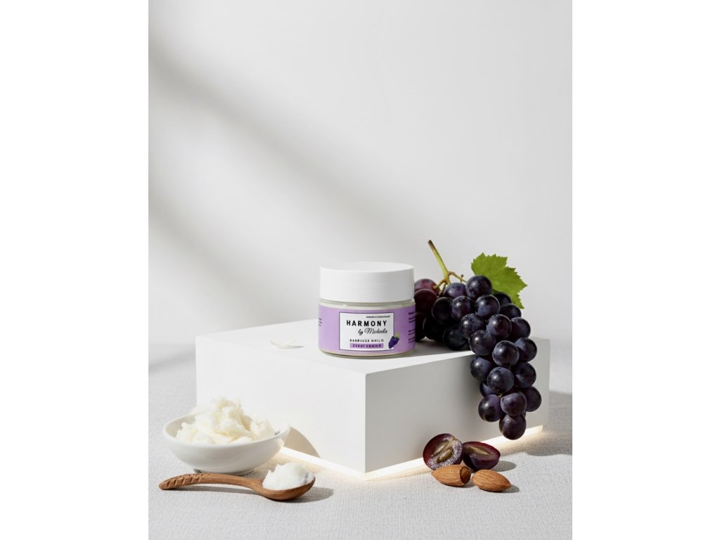 Dopřejte své pokožce luxusní péči s vůní černého hroznu, která zanechává pleť sametově hladkou, vyživenou a provoněnou. Naše bambucké máslo s mandlovým olejem a vitaminem E je vhodné pro všechny typy pokožky, nezatěžuje póry a přináší maximální hydrataci.